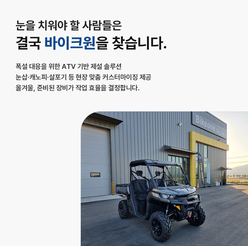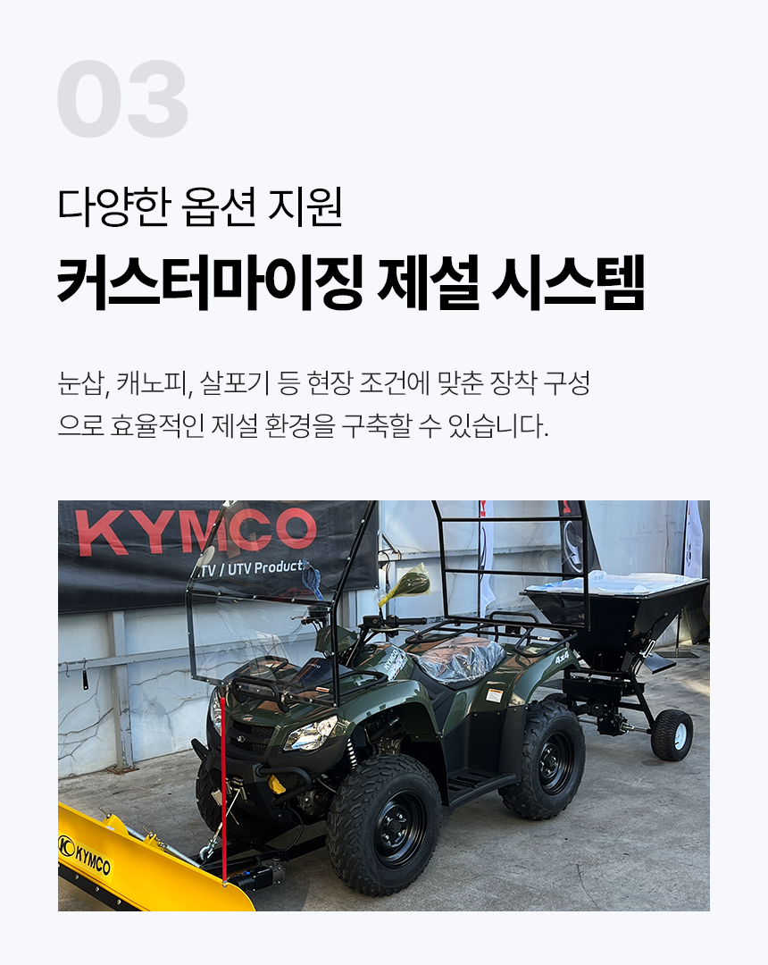 - ATV/UTV ÀåÂø¿ë Á¦¼³Àåºñ´Â ¸ðµÎ º°µµ ±¸¸Å ǰ¸ñÀ̸ç, ÀÚ¼¼ÇÑ »çÇ×Àº °í°´¼¾ÅÍ·Î ¹®ÀÇÇØ ÁÖ¼¼¿ä.